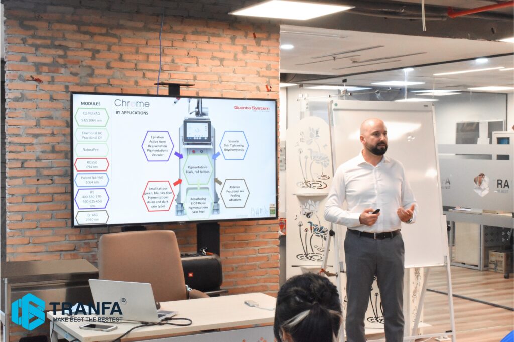 Mr. Andrea Pistocchini – đại diện hãng Quanta System giới thiệu thiết bị mới cho team Tranfa