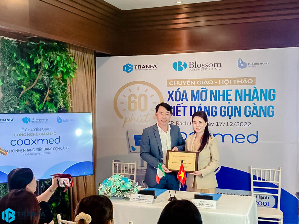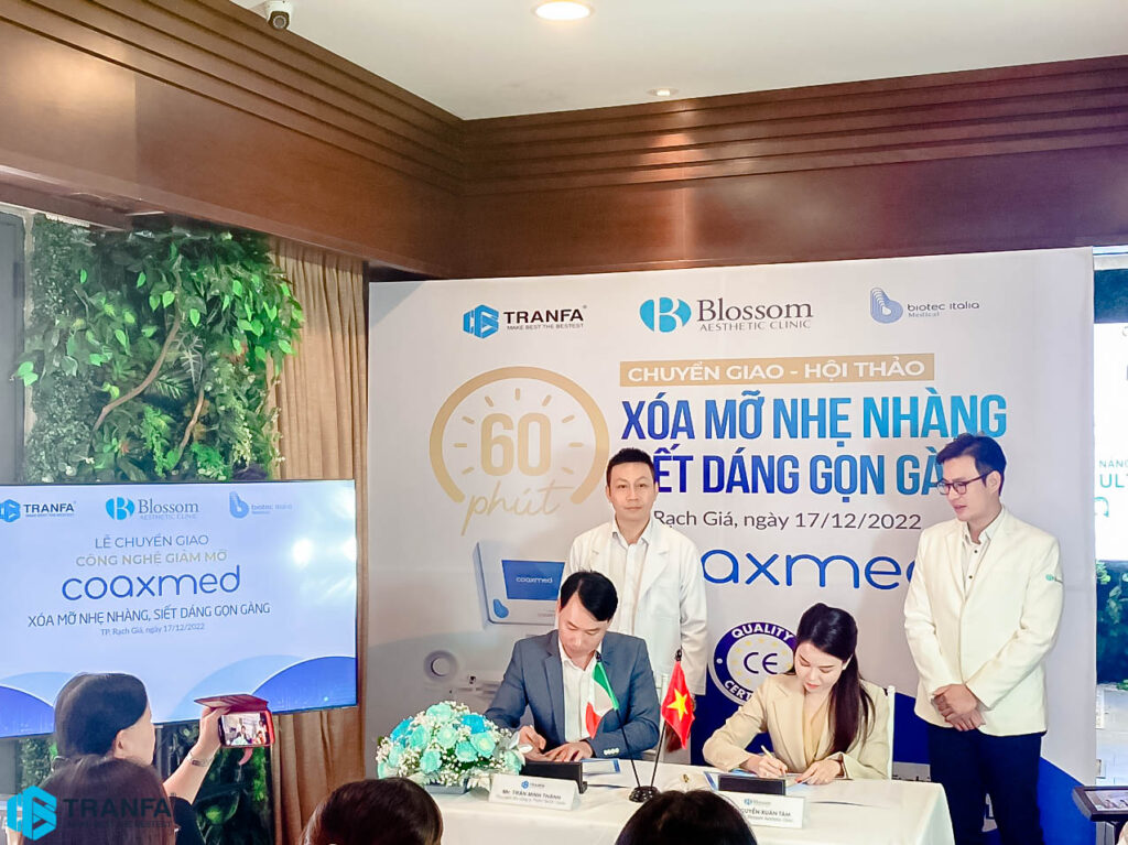 Ngày 17/12/2022 vừa qua tại thành phố Rạch Giá, công ty Tranfa , nhãn hàng Biotec Italia tổ chức buổi Chuyển giao – Hội thảo “Xóa mỡ nhẹ nhàng – Siết dáng gọn gàng” cho Blossom Aesthetic Clinic – Trung Tâm Thẩm Mỹ Da Liễu Công Nghệ Cao với thiết bị Coaxmed.