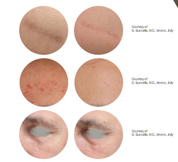 Hệ thống scanning được thiết kế để tái tạo vết sẹo sâu. Giảm thiểu nguy cơ tăng và mất sắc tố sau điều trị nhờ kích thước điểm nhỏ hơn tạo độ thâm nhập sâu hơn với năng lượng ít hơn.