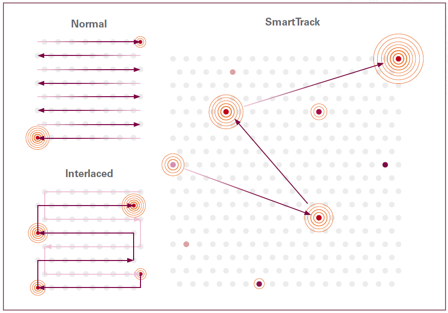 SmartStack: Có thể chọn một trong 5 SmartStack để kiểm soát độ sâu bóc tách chính xác. Tăng mức độ SmartStack, hiệu ứng co rút tăng dần, giúp điều trị hiệu quả và an toàn hơn, nhờ đó giảm thời gian nghỉ dưỡng của bệnh nhân. SmartTrack là thuật toán được phát triển đặc biệt tối ưu hóa điểm phát trên tay cầm scanner giúp giảm thiểu sự gia tăng nhiệt độ cục bộ.