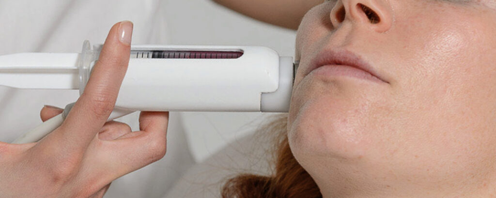 Hợp chất chứa trong ống tiêm 20 cc bên trong đầu điều trị sẽ được phun đều với tốc độ vừa phải xuống dưới da.