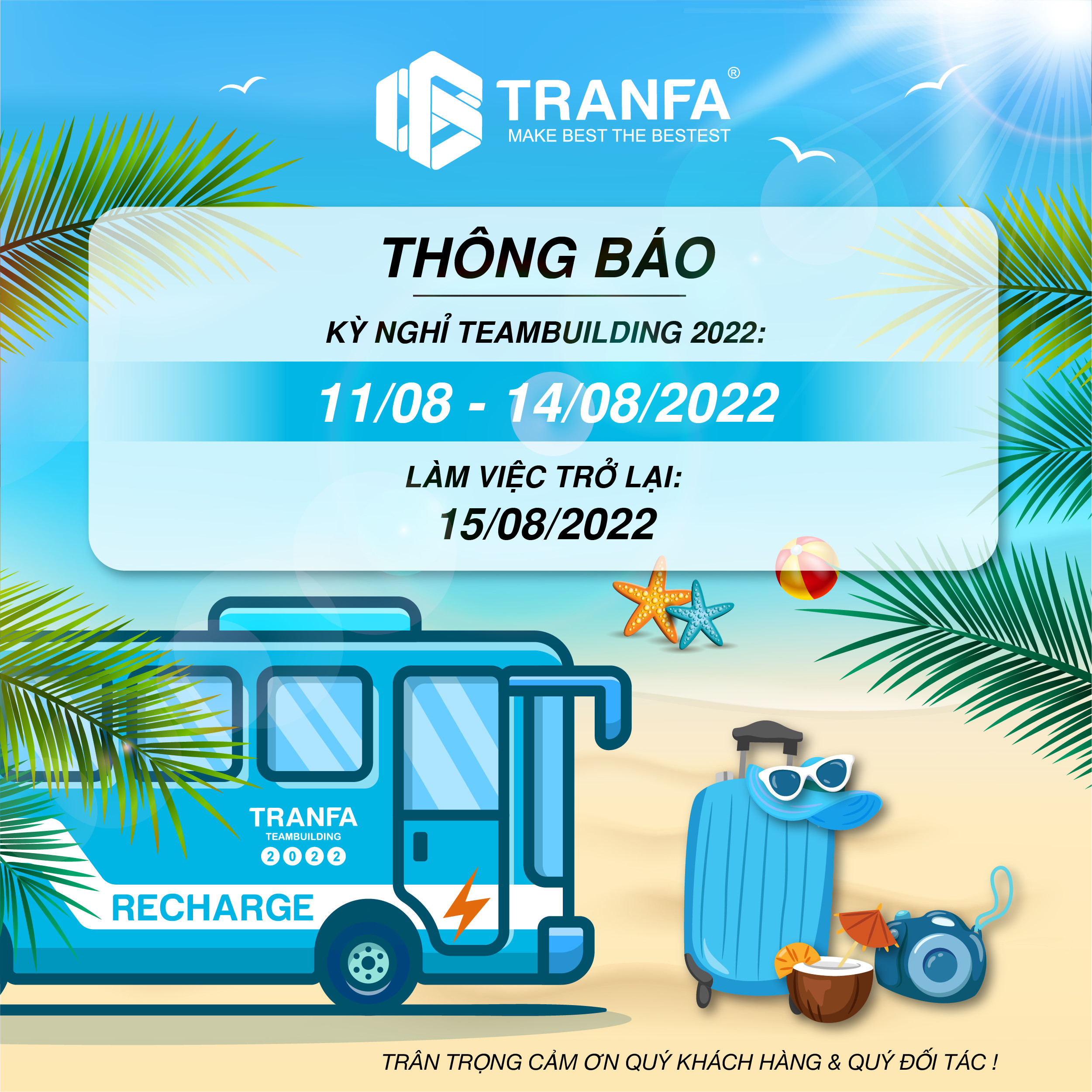 THÔNG BÁO LỊCH NGHỈ TEAMBUILDING 2022